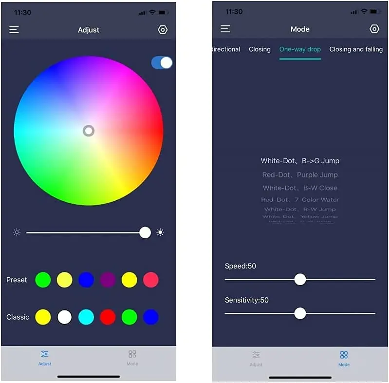 18 color modes adjustable